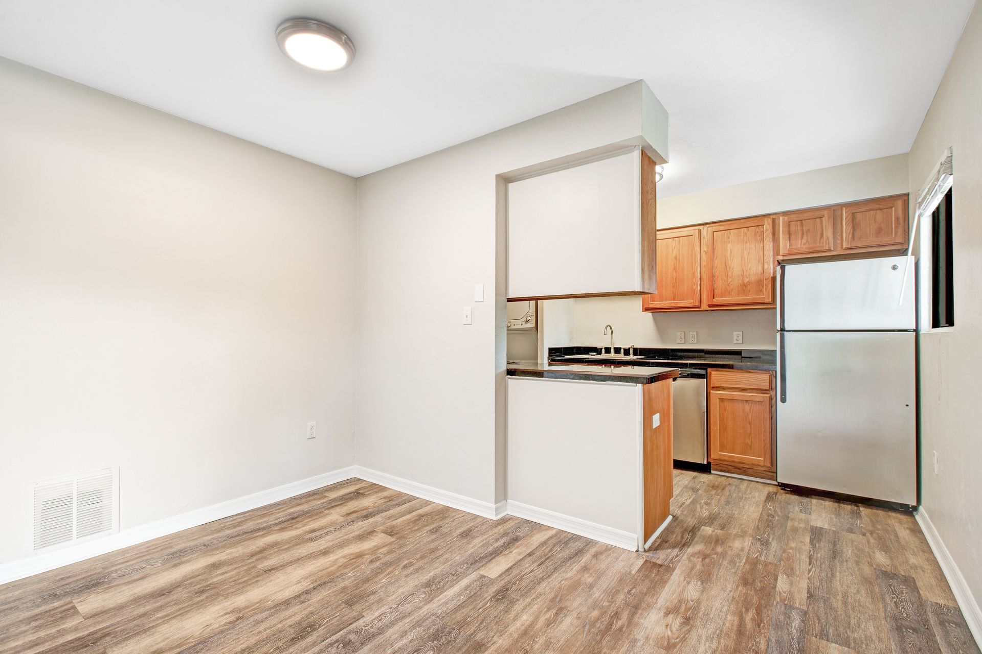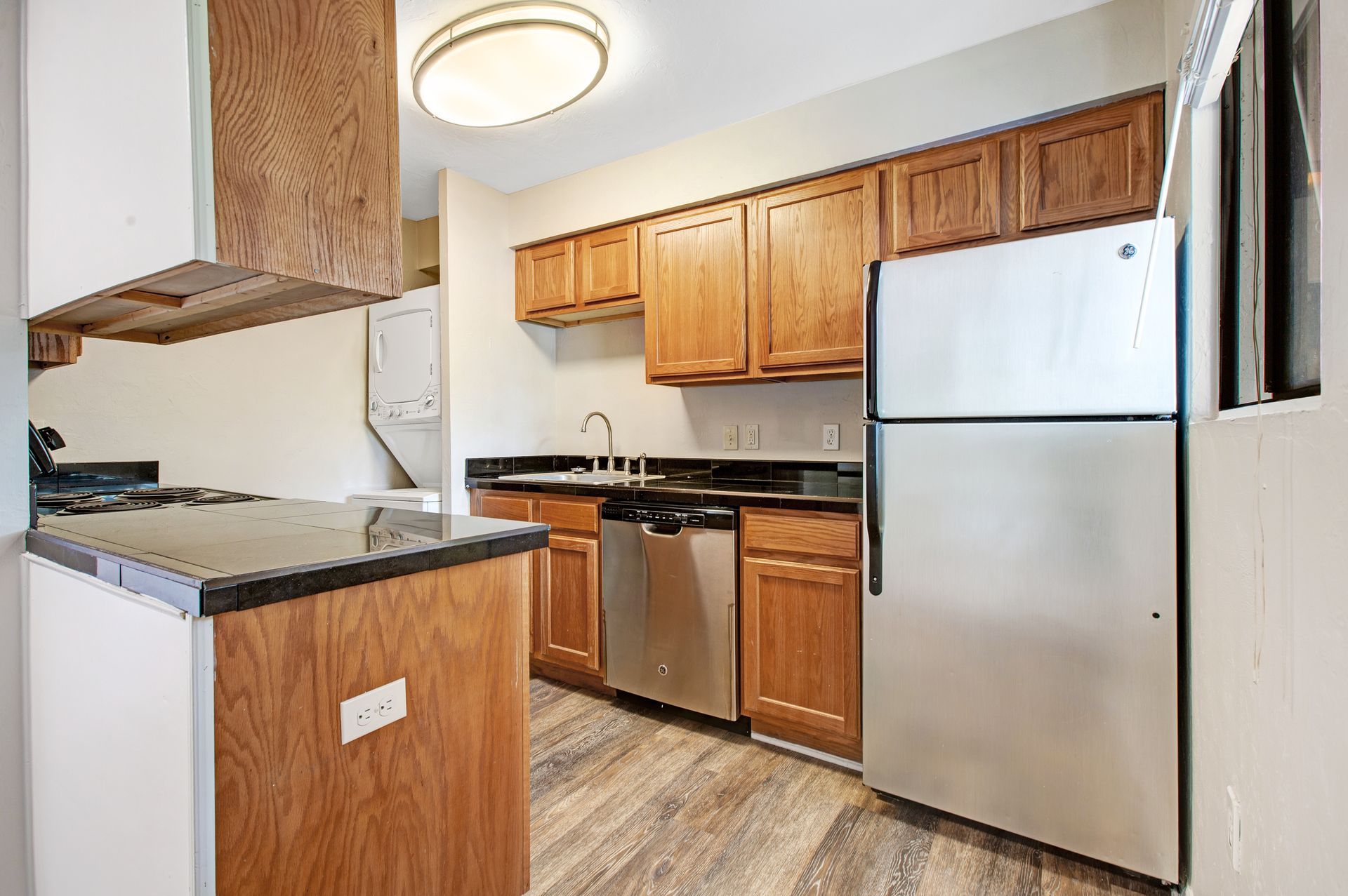 Every Silver Creek apartment features glass top stove granite countertops tile laminate floors and smart home technology at 3009 SW Archer Rd